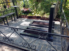 В данном заказе нам предстояло полностью благоустроить место захоронения. Клиент пожелал заменить на участке всё, кроме ограждения. Нам предстояло изготовить два классических гранитных памятника с прямоугольными цветниками, а также выложить территорию могилы брусчаткой. Первым делом мы приехали на кладбище и оценили исходное состояние места захоронения: оно поросло сорняком, а потому выглядело заброшенным.